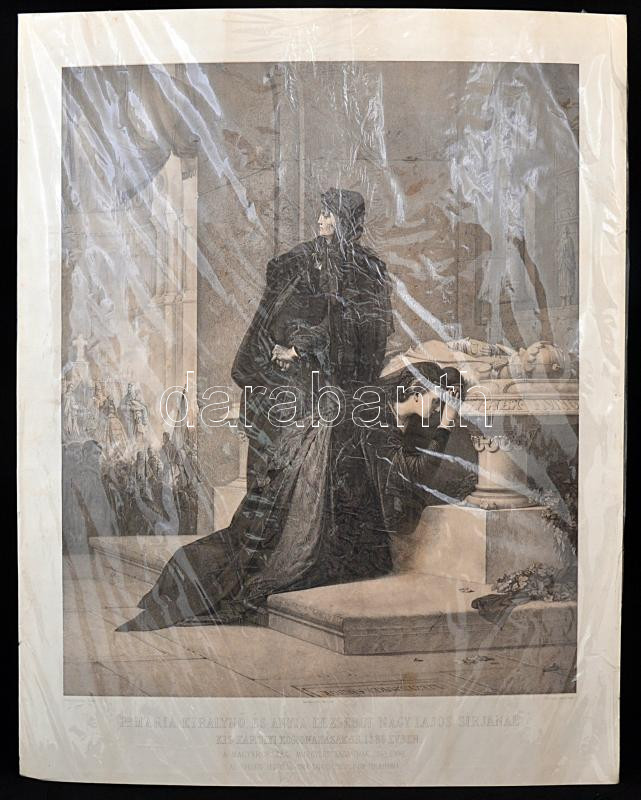 Liczenmayer Sándor(1839-1898): I. Mária királynő és anyja Erzsébet Nagy Lajos király sírjánál Kis Károly koronázásakor 1385. évben. Litho metszet, kőre rajzolta Engerth Vilmos, 54x66 cm