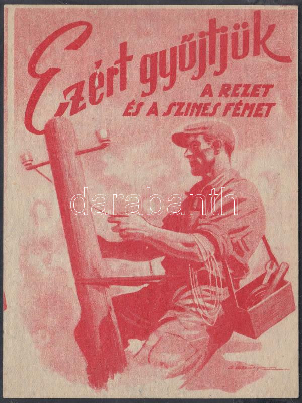"Ezért gyűjtjük a rezet és a színes fémet." Szoc.reál szórólap fémgyűj... https://www.darabanth.com/de/224-Fernauktion/224.0/Andere-Sammelgebiete/Werbungen~34/Ezert-gyujtjuk-a-rezet-es-a-szines-femet-Szocreal-szorolap-femgyujtesrol-cca-1950-~II977404
