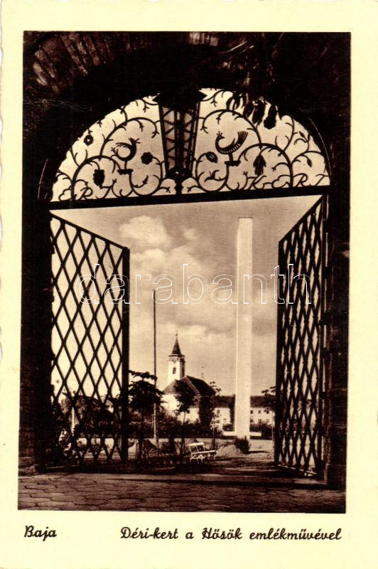 Baja, Déri kert, Hősök emlékműve https://www.darabanth.com/de/224-Fernauktion/224.0/Ansichtskarten/Ungarn~10006/Baja-Deri-kert-Hosok-emlekmuve~II981995