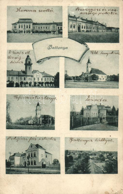 Battonya, Korona szálló, Pénzügyőri és csendőrségi palota, községháza,... https://www.darabanth.com/de/224-Fernauktion/224.0/Ansichtskarten/Ungarn~10006/Battonya-Korona-szallo-Penzugyori-es-csendorsegi-palota-kozseghaza-templom-zarda-i~II979492