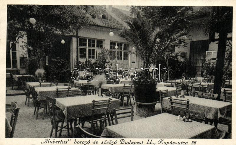 Budapest II. Hubertus borozó és söröző; Kapás utca 36. https://www.darabanth.com/de/224-Fernauktion/224.0/Ansichtskarten/Ungarn~10006/Budapest-II-Hubertus-borozo-es-sorozo-Kapas-utca-36~II978309
