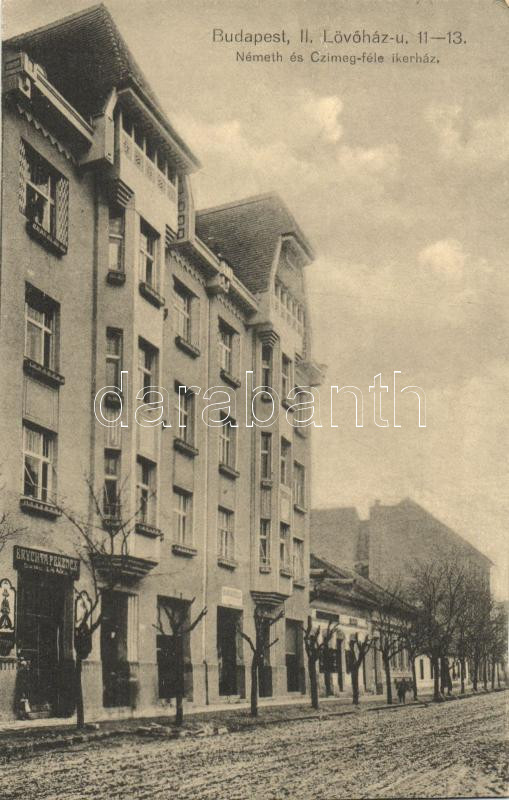 Budapest II. Lövőház u. 11-13. Németh és Czimeg-féle ikerház, Brychta ... https://www.darabanth.com/de/224-Fernauktion/224.0/Ansichtskarten/Ungarn~10006/Budapest-II-Lovohaz-u-11-13-Nemeth-es-Czimeg-fele-ikerhaz-Brychta-Ferenc-uzlete-ragaszt~II983983