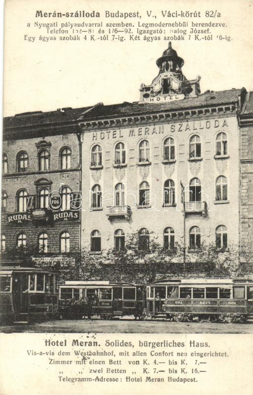 Budapest V. Merán szálloda, Rudas M. fogorvos, villamos, reklám; Váci ... https://www.darabanth.com/de/224-Fernauktion/224.0/Ansichtskarten/Ungarn~10006/Budapest-V-Meran-szalloda-Rudas-M-fogorvos-villamos-reklam-Vaci-korut-82a~II978034