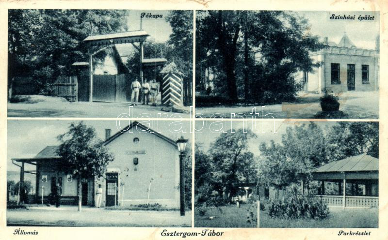 Esztergom Tábor, főkapu, színházi épület, park https://www.darabanth.com/de/224-Fernauktion/224.0/Ansichtskarten/Ungarn~10006/Esztergom-Tabor-fokapu-szinhazi-epulet-park~II980330