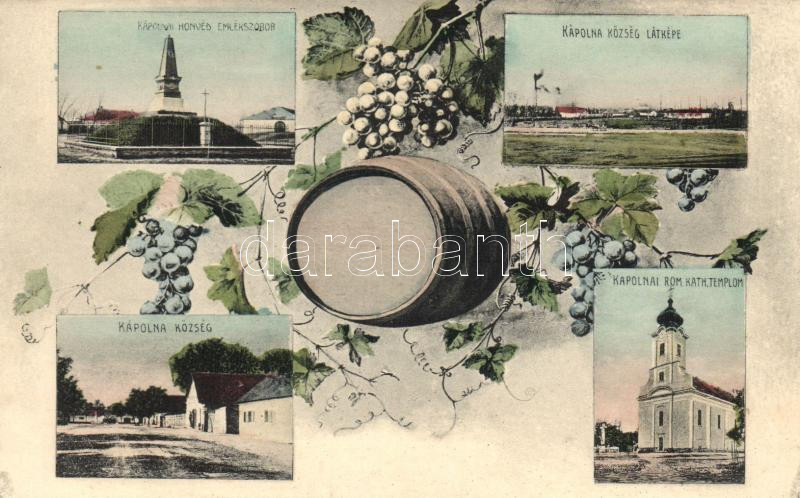 Kápolna, Római katolikus templom, Honvéd emlékszobor, szőlő és boros h... https://www.darabanth.com/de/224-Fernauktion/224.0/Ansichtskarten/Ungarn~10006/Kapolna-Romai-katolikus-templom-Honved-emlekszobor-szolo-es-boros-hordo~II979783