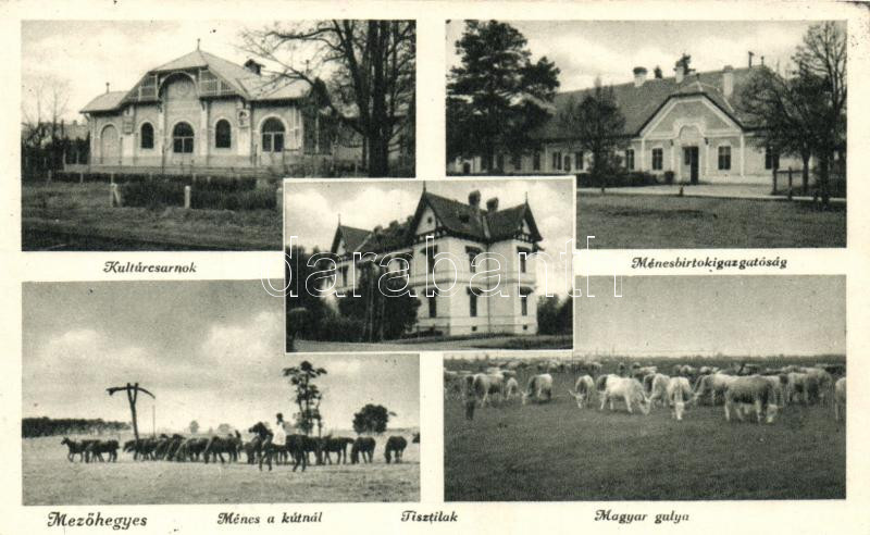 Mezőhegyes, Kultúrcsarnok, Ménesbirtok igazgatóság, Tisztilak, magyar ... https://www.darabanth.com/de/224-Fernauktion/224.0/Ansichtskarten/Ungarn~10006/Mezohegyes-Kulturcsarnok-Menesbirtok-igazgatosag-Tisztilak-magyar-gulya~II977773