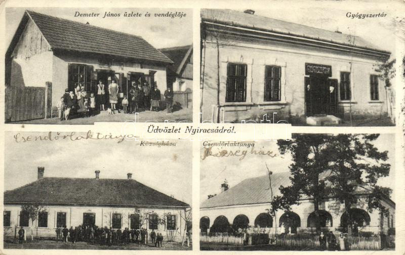 Nyíracsád, Demeter János üzlete és vendéglője, gyógyszertár, Községház... https://www.darabanth.com/de/224-Fernauktion/224.0/Ansichtskarten/Ungarn~10006/Nyiracsad-Demeter-Janos-uzlete-es-vendegloje-gyogyszertar-Kozseghaza-Csendorlaktany~II978081