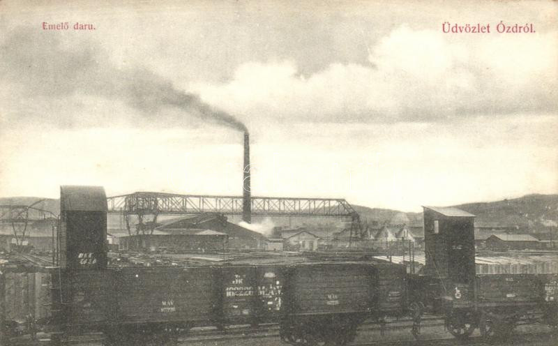 Ózd, Emelő daru, tehervagon https://www.darabanth.com/de/224-Fernauktion/224.0/Ansichtskarten/Ungarn~10006/Ozd-Emelo-daru-tehervagon~II979777