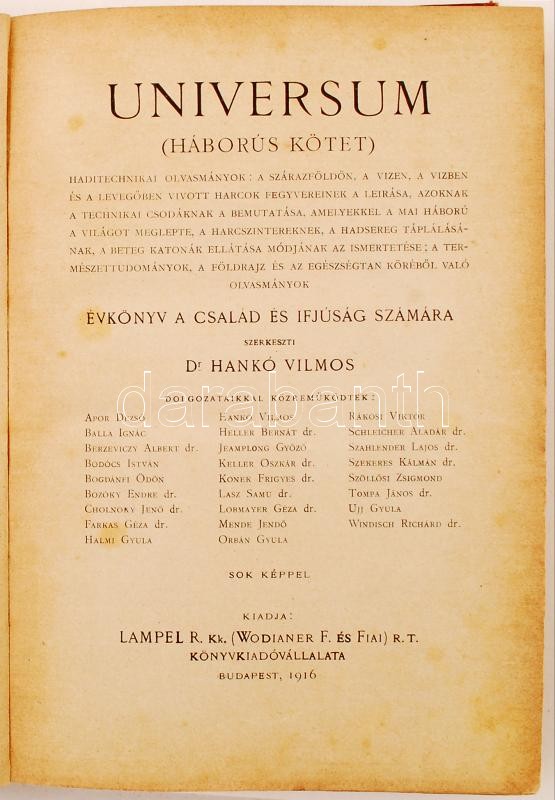 Dr. Hankó Vilmos (szerk.): Universum (Háborús kötet), évkönyv a család... https://www.darabanth.com/de/225-Fernauktion/225.0/Andere-Sammelgebiete/Bucher-Militaria~8/Dr-Hanko-Vilmos-szerk-Universum-Haborus-kotet-evkonyv-a-csalad-es-ifjusag-szamar~II921880