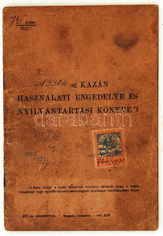 1915 Kazán (Fowler John és tsa, Leeds) használati engedélye és nyilván... https://www.darabanth.com/de/225-Fernauktion/225.0/Andere-Sammelgebiete/Dokument~37/1915-Kazan-Fowler-John-es-tsa-Leeds-hasznalati-engedelye-es-nyilvantartasi-konyve~II959315