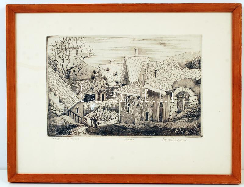 Ábrahám Rafael (1929- ): Nagymarosi házak. Rézkarc, papír, jelzett, 32... https://www.darabanth.com/de/225-Fernauktion/225.0/Andere-Sammelgebiete/Gemalde-und-Grafiken~10/Abraham-Rafael-1929--Nagymarosi-hazak-Rezkarc-papir-jelzett-32100-uvegezett-keretben~II987834