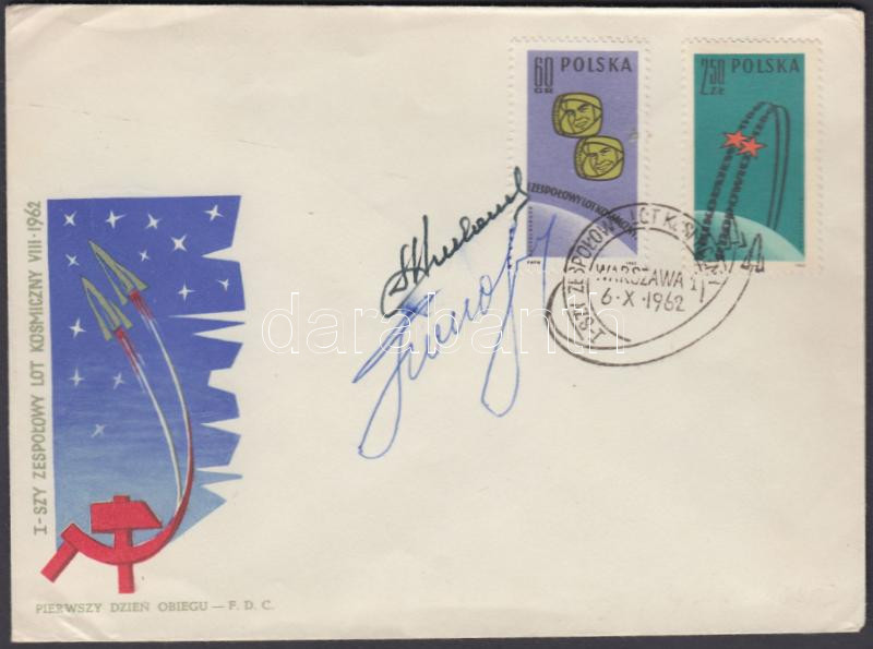 1962 Lengyel FDC Nikolajev és Popovic szovjet űrhajósok saját kezű alá... https://www.darabanth.com/de/225-Fernauktion/225.0/Andere-Sammelgebiete/Signatur~39/1962-Lengyel-FDC-Nikolajev-es-Popovic-szovjet-urhajosok-sajat-kezu-alairasaval-Astronaut-~II988292