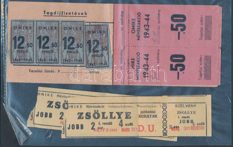 1944 OMIKE igazolvány + 2 színházjegy https://www.darabanth.com/de/225-Fernauktion/225.0/Andere-Sammelgebiete/Stempelmarken~36/1944-OMIKE-igazolvany-plus-2-szinhazjegy~II981590
