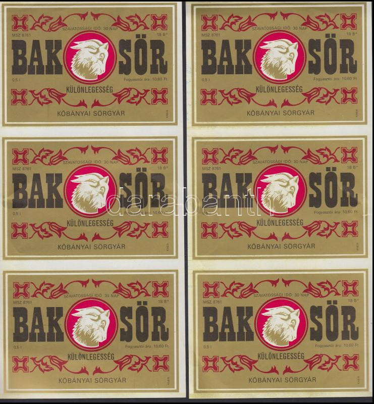 Beschreibung: Kőbányai sörgyár sörös címke: Bak sör, 6db