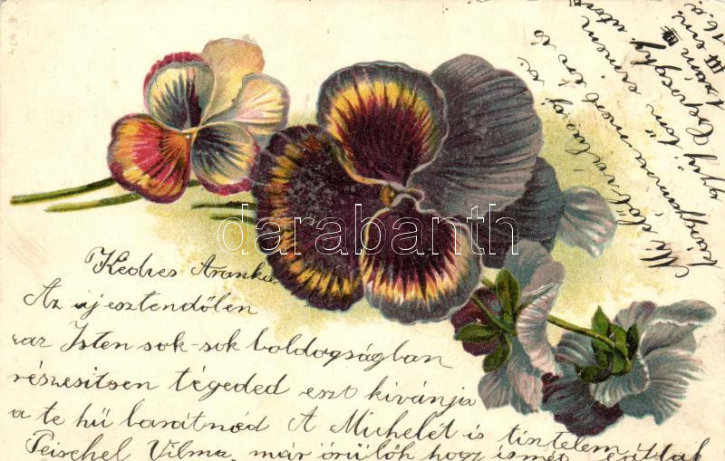 Pansy, decorated posrcard, litho https://www.darabanth.com/de/225-Fernauktion/225.0/Ansichtskarten/Blumen~1200442/Pansy-decorated-posrcard-litho~II987096