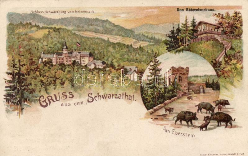 Schwarzatal, Schweizerhaus, Schloss Schwarzburg, litho https://www.darabanth.com/de/225-Fernauktion/225.0/Ansichtskarten/Deutschland~1200421/Schwarzatal-Schweizerhaus-Schloss-Schwarzburg-litho~II858790