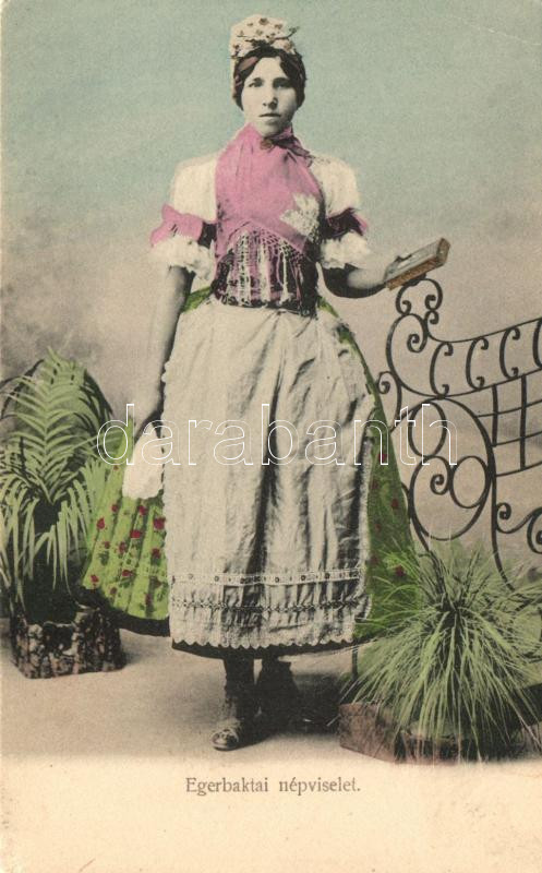 Egerbaktai népviselet / Hungarian folklore from Egerbakta (EK) https://www.darabanth.com/de/225-Fernauktion/225.0/Ansichtskarten/Folklore~1200386/Egerbaktai-nepviselet-Hungarian-folklore-from-Egerbakta-EK~II987717