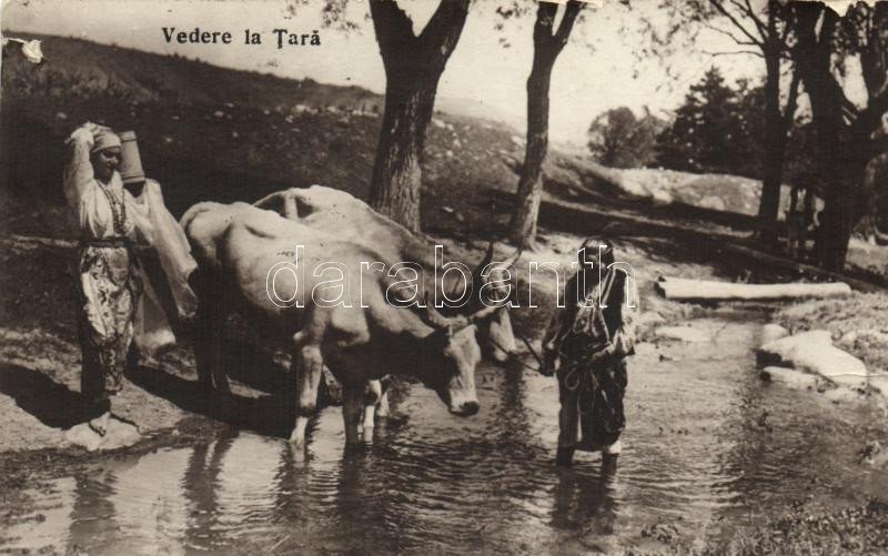 Vedere la Tara / Romanian folklore with bulls (b) https://www.darabanth.com/de/225-Fernauktion/225.0/Ansichtskarten/Folklore~1200386/Vedere-la-Tara-Romanian-folklore-with-bulls-b~II992685