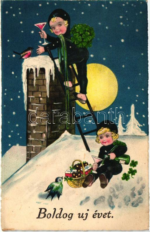 New Year, children chimney sweepers, champagne litho https://www.darabanth.com/de/225-Fernauktion/225.0/Ansichtskarten/GruC39Fkarte~1200440/New-Year-children-chimney-sweepers-champagne-litho~II910236