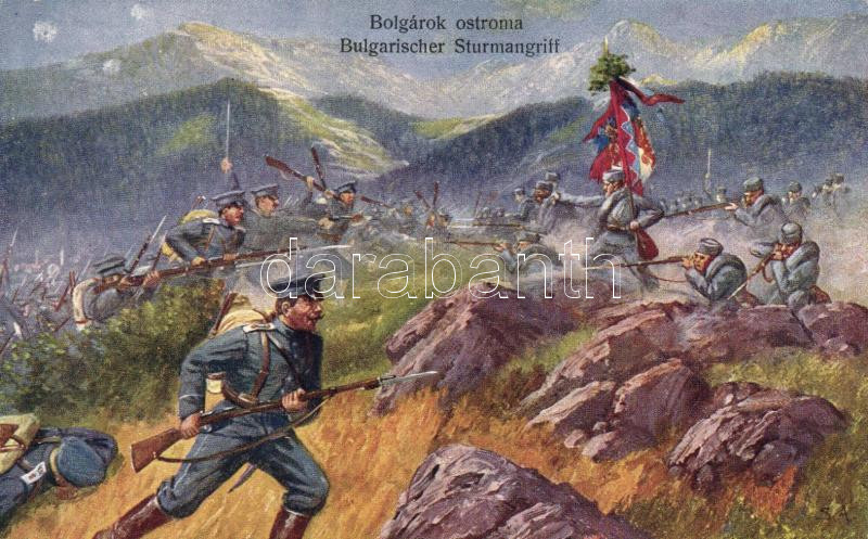 WWI K.u.K. soldiers attacking the Bulgarians https://www.darabanth.com/de/225-Fernauktion/225.0/Ansichtskarten/Militaria~1200408/WWI-KuK-soldiers-attacking-the-Bulgarians~II989987