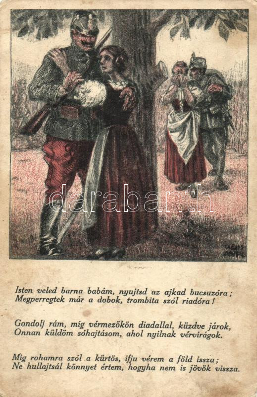 WWI Romantic military card, soldier with his lover s: Weiss Antal (EB) https://www.darabanth.com/de/225-Fernauktion/225.0/Ansichtskarten/Militaria~1200408/WWI-Romantic-military-card-soldier-with-his-lover-s-Weiss-Antal-EB~II989753