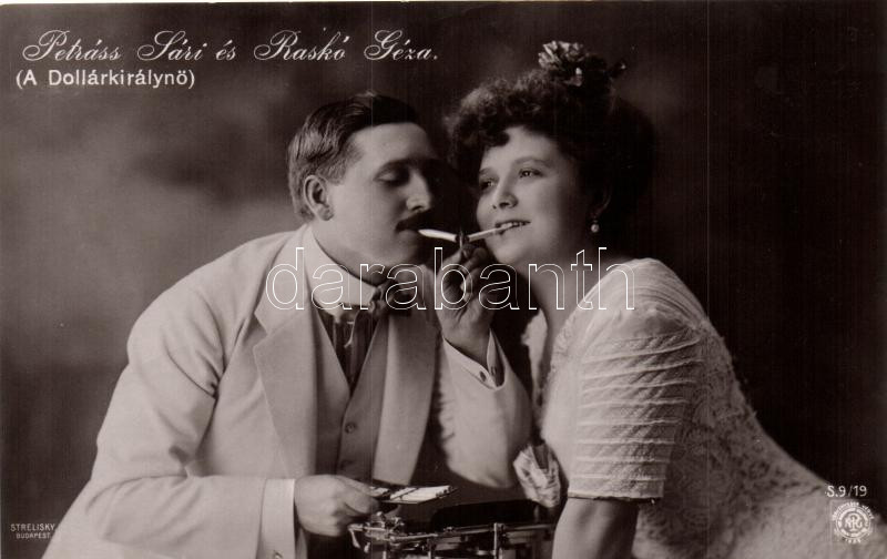 Petráss Sári és Raskó Géza, A Dollárkirálynő https://www.darabanth.com/de/225-Fernauktion/225.0/Ansichtskarten/Schauspielerin~1200433/Petrass-Sari-es-Rasko-Geza-A-Dollarkiralyno~II865434