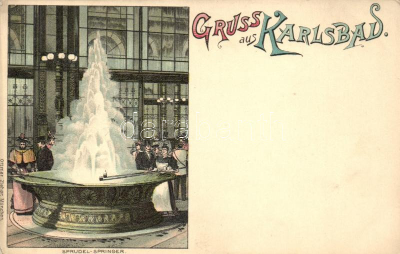 Karlovy Vary, Karlsbad; Sprudel-Springer, Ottmar Zieher, litho https://www.darabanth.com/de/225-Fernauktion/225.0/Ansichtskarten/Tschechische-Republik~1200390/Karlovy-Vary-Karlsbad-Sprudel-Springer-Ottmar-Zieher-litho~II986183