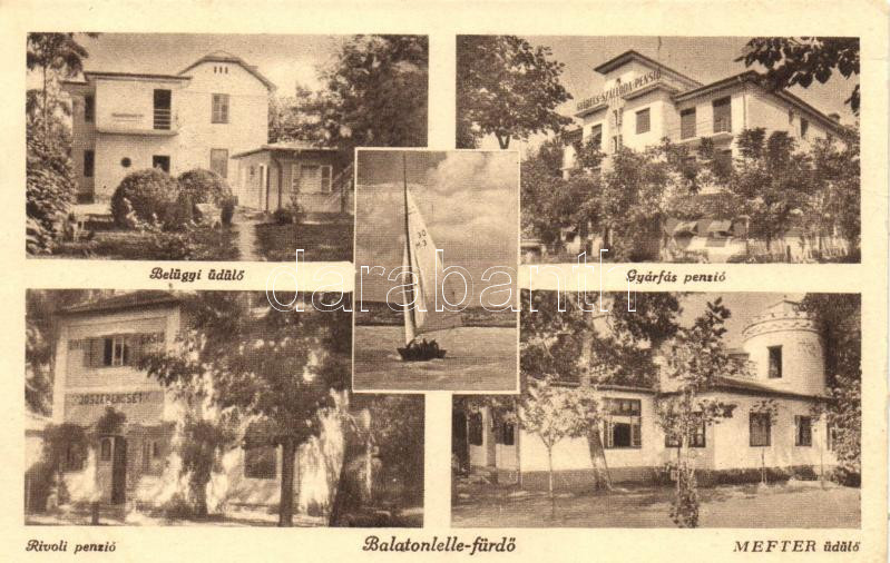 Beschreibung: Balatonlelle-fürdő, Belügyi üdülő, Gyárfás és Rivoli penzió, MEFTER üdülő