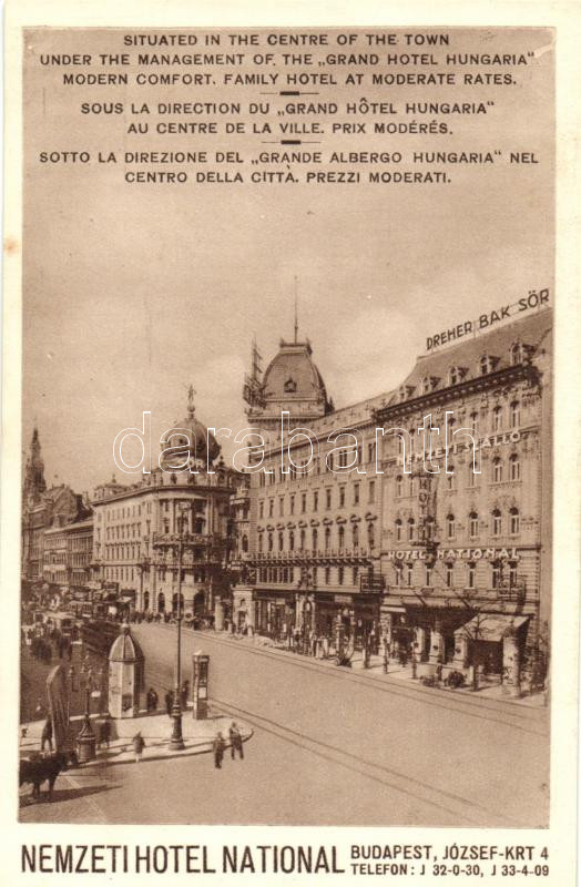 Beschreibung: Budapest VIII. Nemzeti Szálloda, reklám