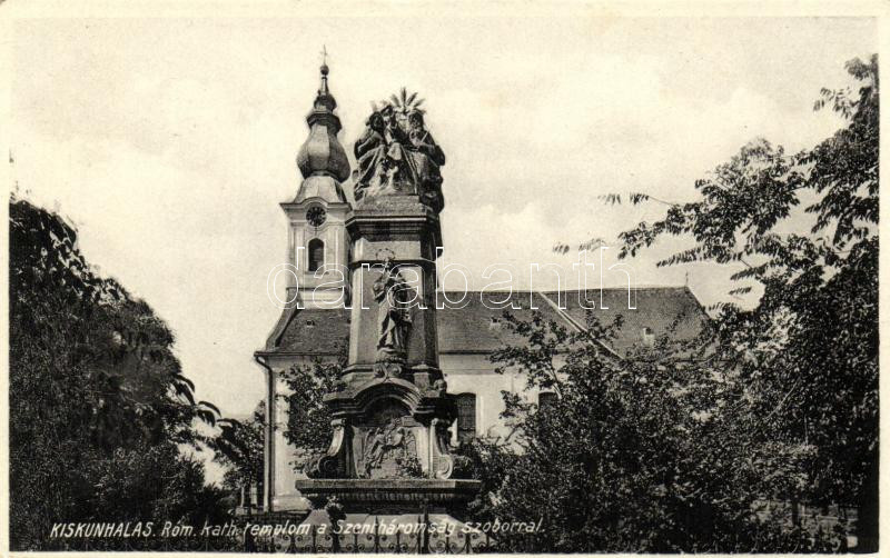 Kiskunhalas, Római katolikus templom, Szentháromság szobor https://www.darabanth.com/de/225-Fernauktion/225.0/Ansichtskarten/Ungarn~300010/Kiskunhalas-Romai-katolikus-templom-Szentharomsag-szobor~II989907