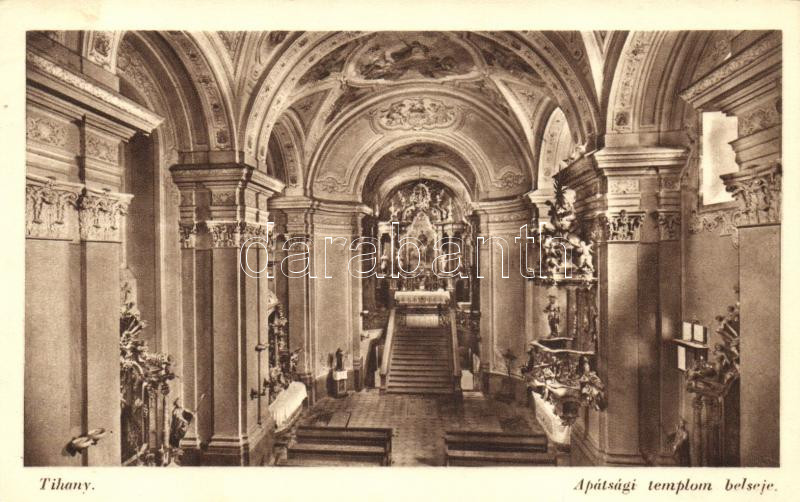 Tihany, Apátsági templom belső https://www.darabanth.com/de/225-Fernauktion/225.0/Ansichtskarten/Ungarn~300010/Tihany-Apatsagi-templom-belso~II986917