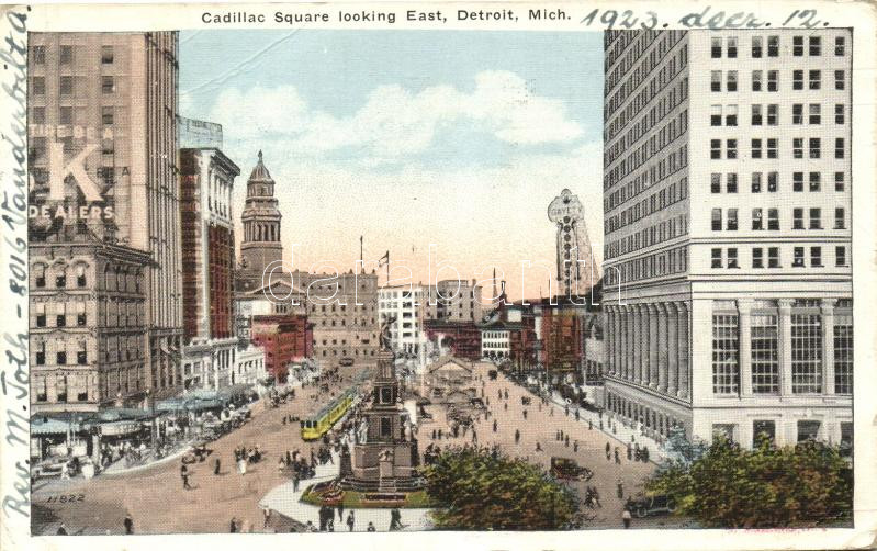 Detroit, Cadillac Square looking East, tram (fa) https://www.darabanth.com/de/225-Fernauktion/225.0/Ansichtskarten/Vereinigte-Staaten-von-Amerika~1200369/Detroit-Cadillac-Square-looking-East-tram-fa~II911569