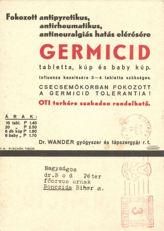 Germicid tabletta, kúp, influenza és lázas betegségek ellen, reklám / ... https://www.darabanth.com/de/225-Fernauktion/225.0/Ansichtskarten/Werbungen~1200456/Germicid-tabletta-kup-influenza-es-lazas-betegsegek-ellen-reklam-medicine-advertisement-1~II987051