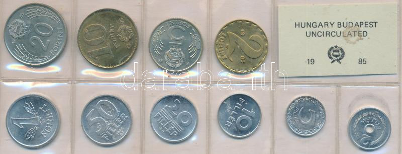 1985. 2f-20Ft 10db klf érmés forgalmi sor fóliatokban T:1 https://www.darabanth.com/de/225-Fernauktion/225.0/Numismatik/Ungarische-Munzen~54/1985-2f-20Ft-10db-klf-ermes-forgalmi-sor-foliatokban-T1~II987456