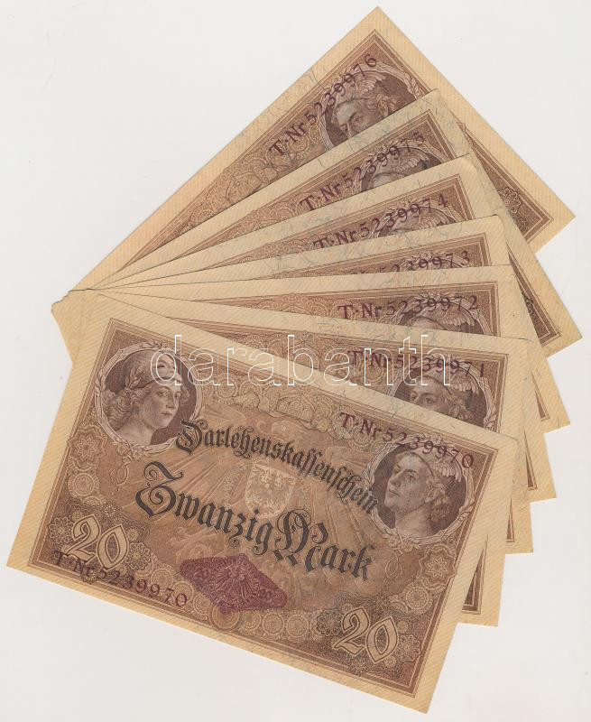 Germany / Empire 1914. 20 Mark "Darlehenskassenschein" 7 digit serial (7x) sequential serials C:AU