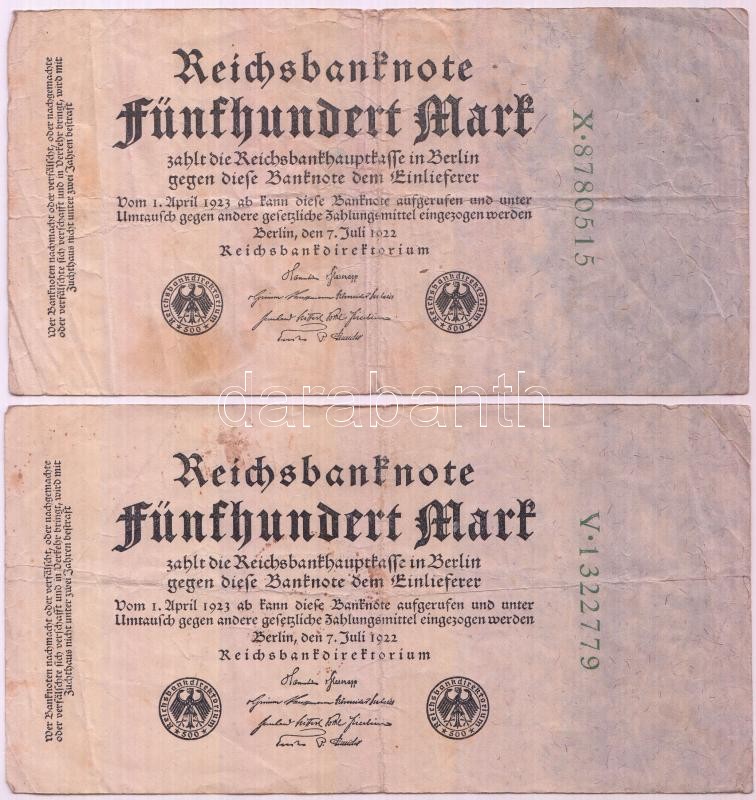 Németország / Weimari Köztársaság 1922. 500M (5x) + 1922. 5000M (3x) T... https://www.darabanth.com/de/225-Fernauktion/225.0/Numismatik/Weltweit-Banknoten~57/Nemetorszag-Weimari-Koztarsasag-1922-500M-5x-plus-1922-5000M-3x-TII-III-III--3Cbr3EGerman~II987221