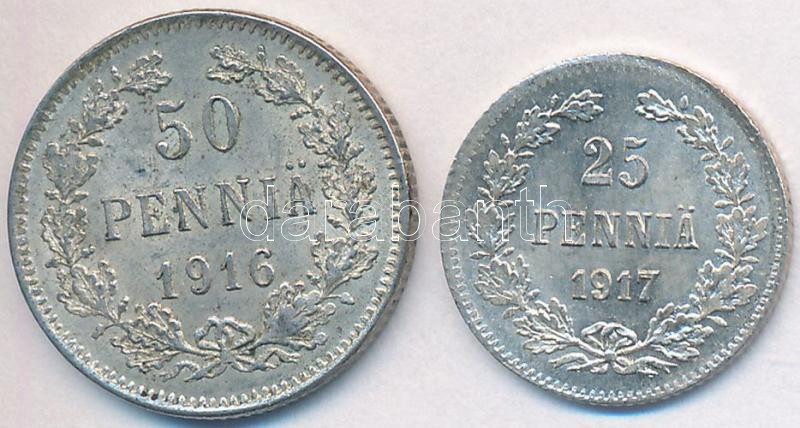 Finnország 1916. 50p Ag + 1917. 25p Ag T:2