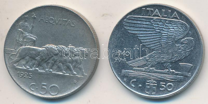 Beschreibung: Olaszország 1925. 50c Ni + 1940. 50c acél "III. Viktor Emánuel" T:2,2-