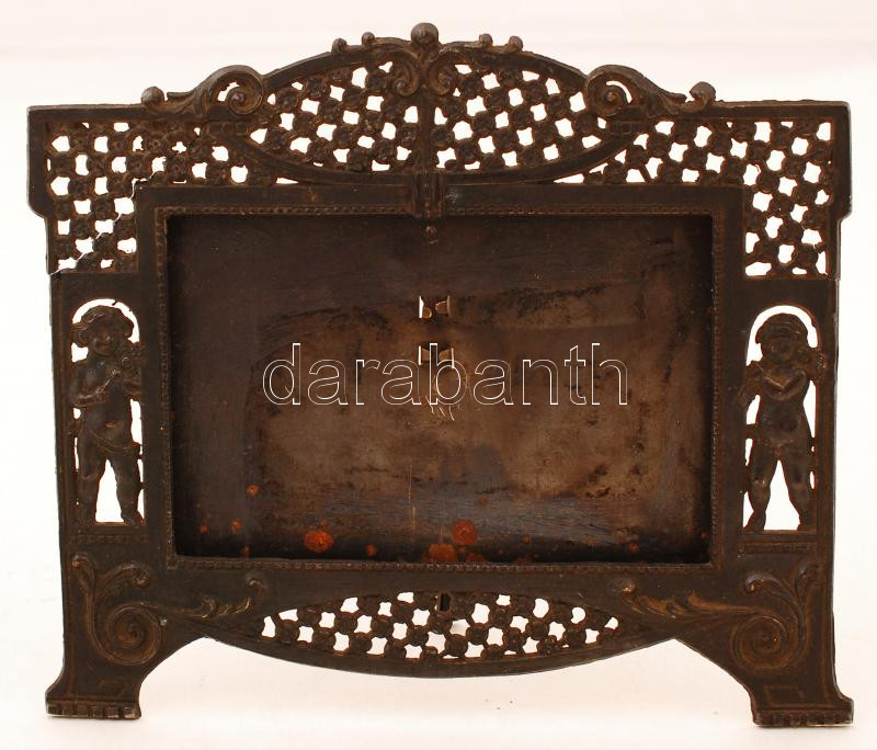 Beschreibung: Antik fém asztali fényképtartó, fotóméret 12x8 cm, 18x16 cm