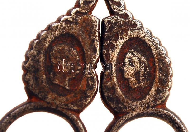 Beschreibung: cca 1890 Ferenc Józsefet és Erzsébet királynét ábrázoló régi olló, h: 17,5 cm