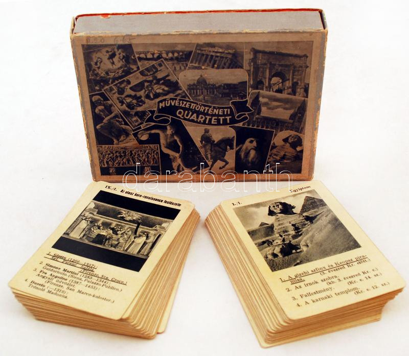cca 1930-1940 Művészettörténeti quartett, 64 lapos kártyajáték, saját,... https://www.darabanth.com/de/226-Fernauktion/226.0/Andere-Sammelgebiete/Flohmarkt~400032/cca-1930-1940-Muveszettorteneti-quartett-64-lapos-kartyajatek-sajat-kisse-kopott-doboza~II1002242