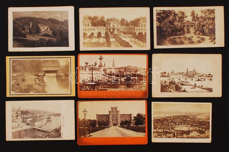 Beschreibung: cca 1860-1880 56 db régi keményhátú kép német nyelvterületekről, Berlin, Heidelberg, Lausanne, München, Zürich, Bécs, Hallstatt stb., 10x6 cm