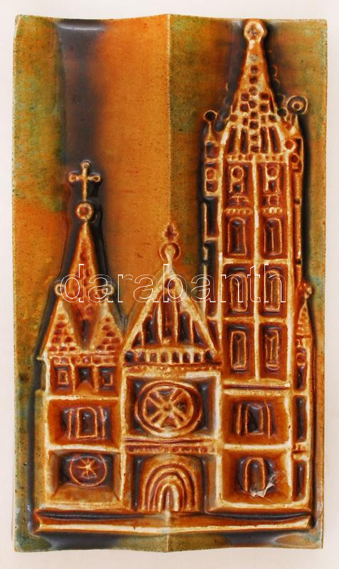 Beschreibung: Mátyás templom falikép, mázas kerámia, jelzés nélkül, apró kopásokkal, 24×14,5×4 cm