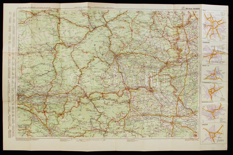 1941 Graz-Varaždin környékének Graz-Varaždin (Klagenfurt, Marburg, Graz) autós térképe, Kartogr. Anstalt Freytag-Berndt u. Artaria, Wien, 94x61 cm /