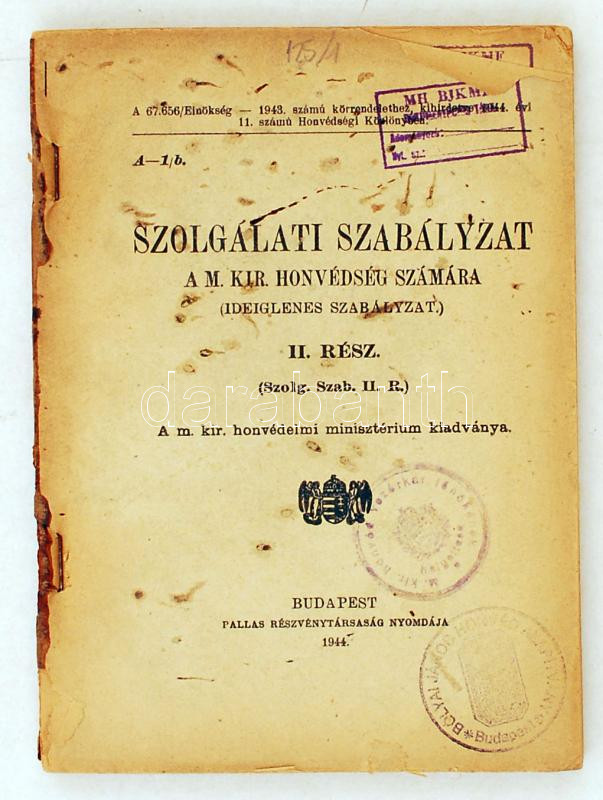 1944 Szolgálati szabályzat a Magyar Királyi Honvédség számára II. rész... https://www.darabanth.com/de/226-Fernauktion/226.0/Andere-Sammelgebiete/Militaria~400004/1944-Szolgalati-szabalyzat-a-Magyar-Kiralyi-Honvedseg-szamara-II-resz-Borito-nelkul-19~II909051