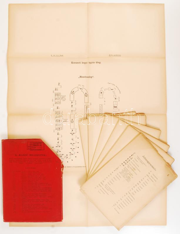Beschreibung: cca 1930 Harcászati oktatóanyag. Tüzérségi ütegek beosztásának rajzai gyakorlatozásra. 23 nagyméretű rajz tékában