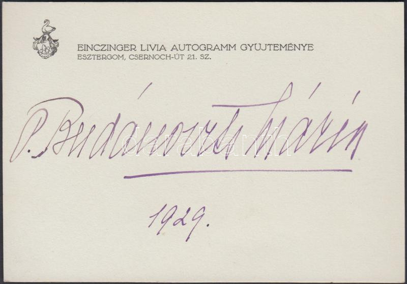 Budanovits Mária (1884-1976) mezzoszoprán énekesnő aláírása https://www.darabanth.com/de/226-Fernauktion/226.0/Andere-Sammelgebiete/Signatur~400039/Budanovits-Maria-1884-1976-mezzoszopran-enekesno-alairasa~II1002929