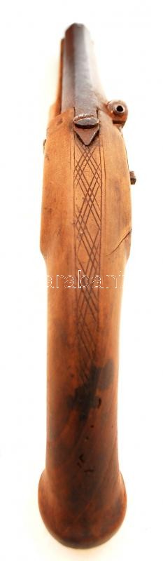 Beschreibung: Antik elöltöltős pisztoly, fa markolattal, hiányos