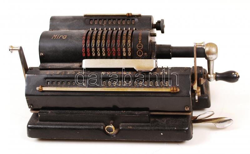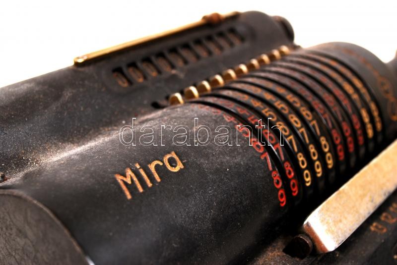 Mira antik mechanikus számológép, jelzett, jó állapotban, 12×25 cm https://www.darabanth.com/de/227-Fernauktion/227.0/Andere-Sammelgebiete/Antik~200317/Mira-antik-mechanikus-szamologep-jelzett-jo-allapotban-12C39725-cm~II851450