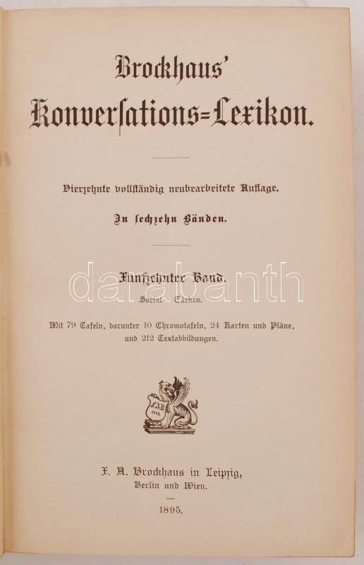 Brockhaus Konversations-Lexikon 6-7., 11-12. és 15. kötete. Berlin, 18... https://www.darabanth.com/de/227-Fernauktion/227.0/Andere-Sammelgebiete/Bucher-Andere-Sprachen~200330/Brockhaus-Konversations-Lexikon-6-7-11-12-es-15-kotete-Berlin-1894-1895-Brockhaus-in-Leipzi~II1004544